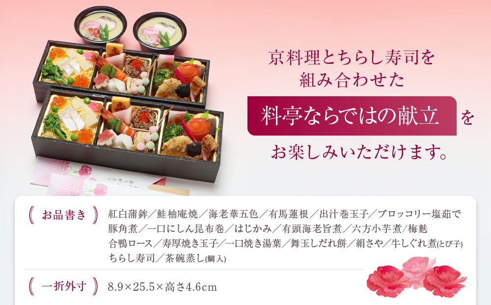 伝統の技と旬の素材を生かした彩り鮮やかな京料理とちらし寿司の詰め合わせです。