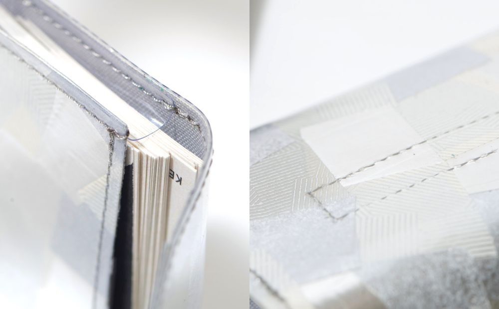 京都西陣に使用されている伝統技法「引箔(HIKIBAKU)」を用い、職人の長年の感覚によって3種類の銀箔がランダムに裁断、配置され、唯一無二の柄が作り出されている。銀色といった一見派手な色味にも関わらず、職人の技術によって不思議とコーディネートにも馴染むデザインに昇華されている。
