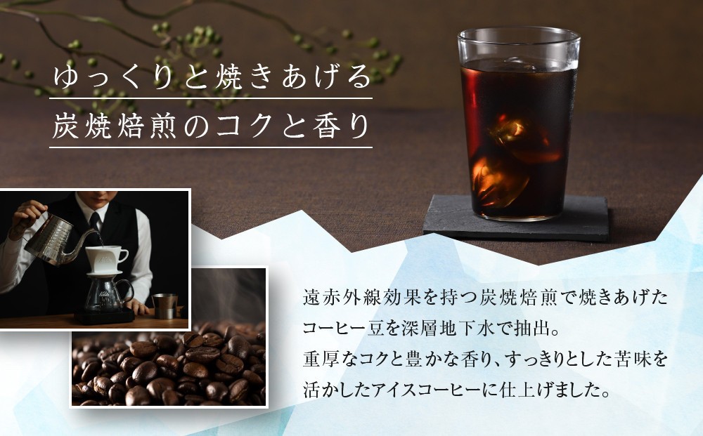 炭焼珈琲ならではの芳醇な香りと豊かなコク。水でじっくり抽出することで、芳ばしい香りとすっきりとした後味の水出しアイスコーヒーがお楽しみいただけます。