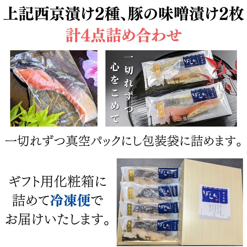 鮭とカレイの西京漬け+豚肉みそ漬け詰め合わせ 4点セット