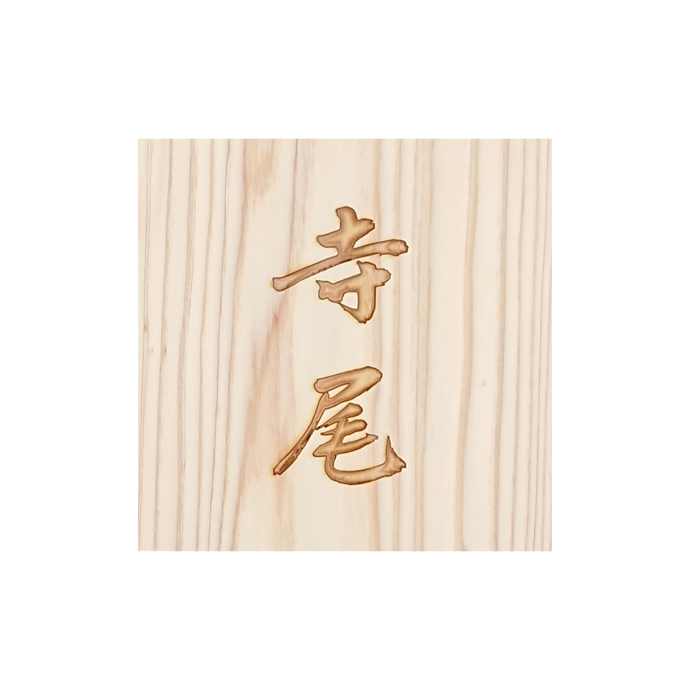全国約1000以上の寺社仏閣に木製品を納品してきた彫刻・製作技術を用いて、お持ち込み戴いた文字データを基に、高品質で芸術性の高い木製自筆表札をお作りします。背面には品質保証の社名印を入れさせて戴いております。