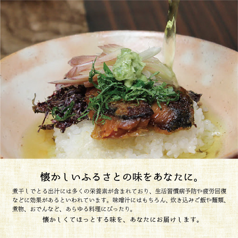煮干しでとる出汁には多くの栄養素が含まれており、生活習慣病予防や疲労回復などに効果があるといわれています。