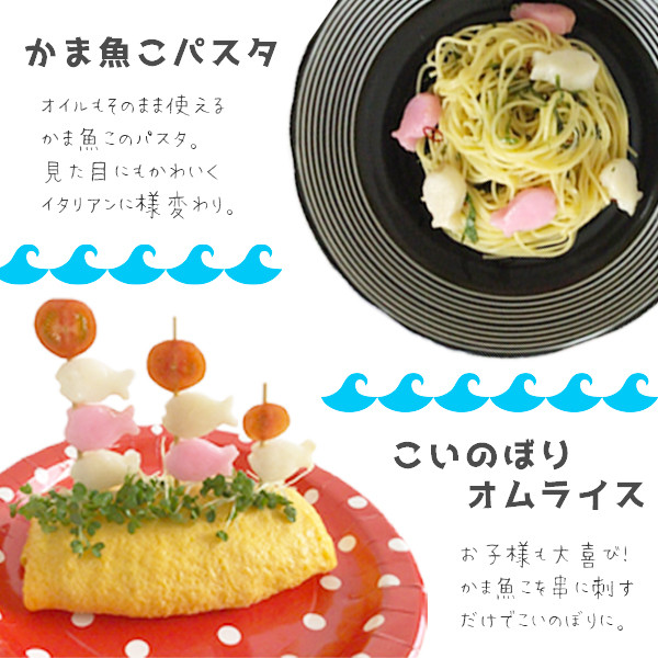 蒲鉾は紅白の魚型で見た目も可愛くお子様にも喜ばれます。