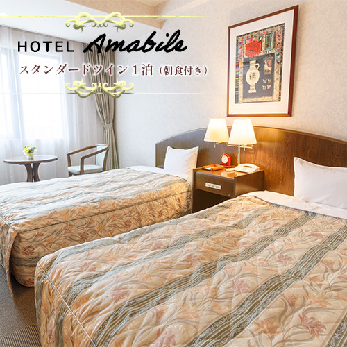 スタンダードツイン2名様(朝食付)でお泊りいただけます。