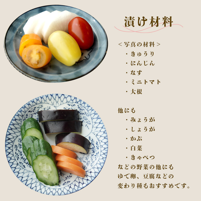 貴重な乳酸菌を壊すことない、「ぬか漬け」の新たな可能性をお試しください。