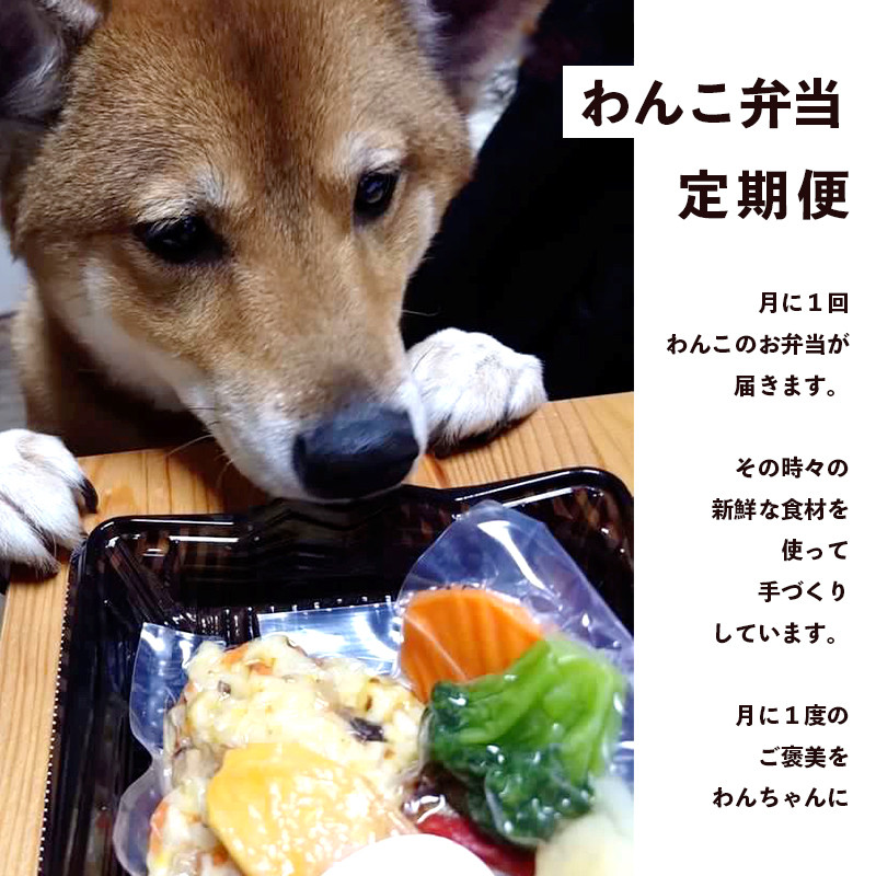 | 容量 | 月に1回(わんこのお弁当Mサイズ1個、わんこ用スープ1個、わんこ用おやつ3袋)×6回 |
