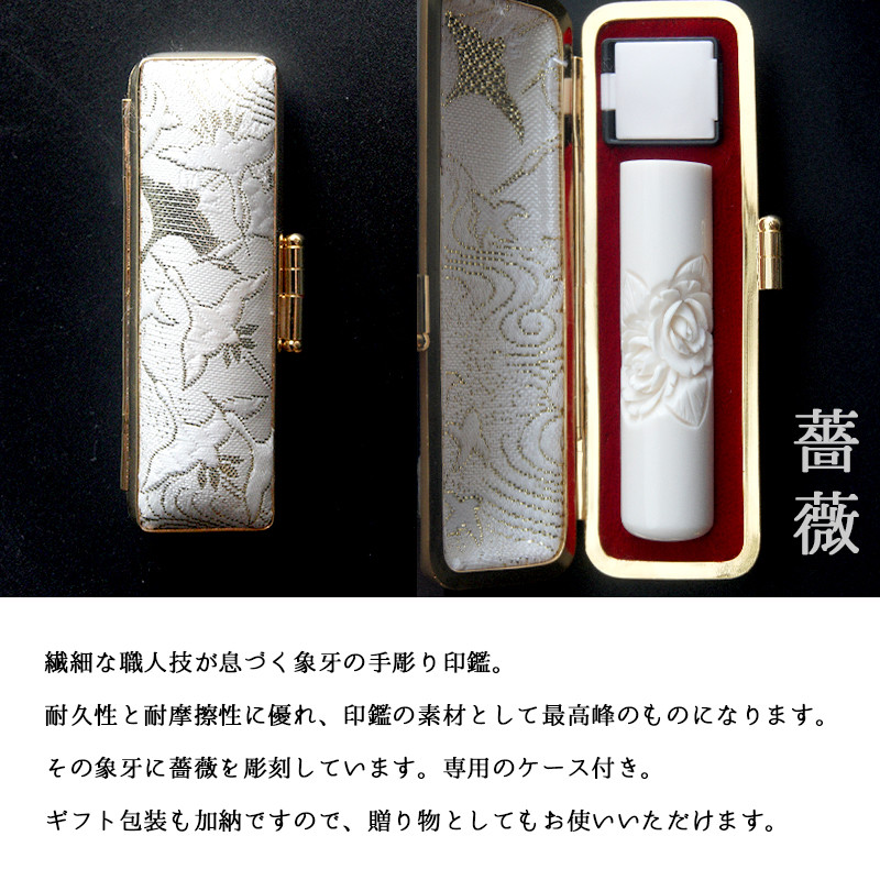 チョイス限定 チョイスPayポイントと交換できる品 職人の完全手彫り、世界に一つだけの印鑑。ギフトラッピング可能 手彫り印鑑 象牙 実印15mm 薔薇・向日葵・桜 彫刻 女性向け 印章 ケース付き 印鑑 ハンコ はんこ 手彫り 高級