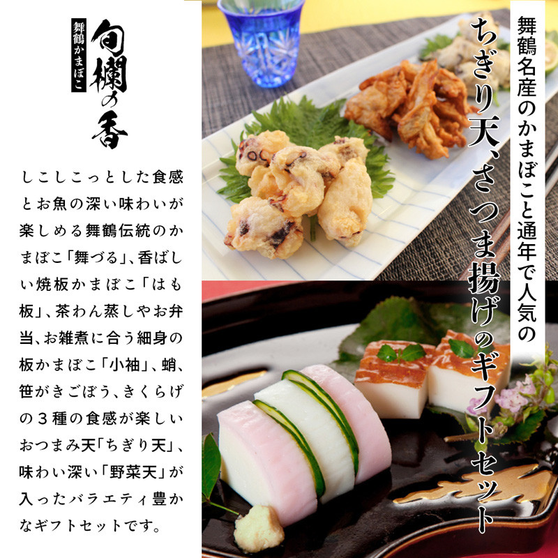 舞鶴名産のかまぼこと通年で人気のちぎり天、さつま揚げのギフトセット。