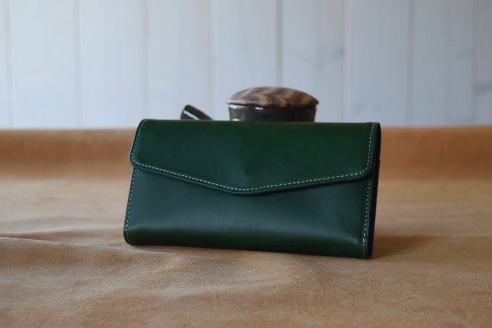 グリーンも経年変化すると深緑になりイタリアンレザー特有の経年変化をお楽しみいただけます。