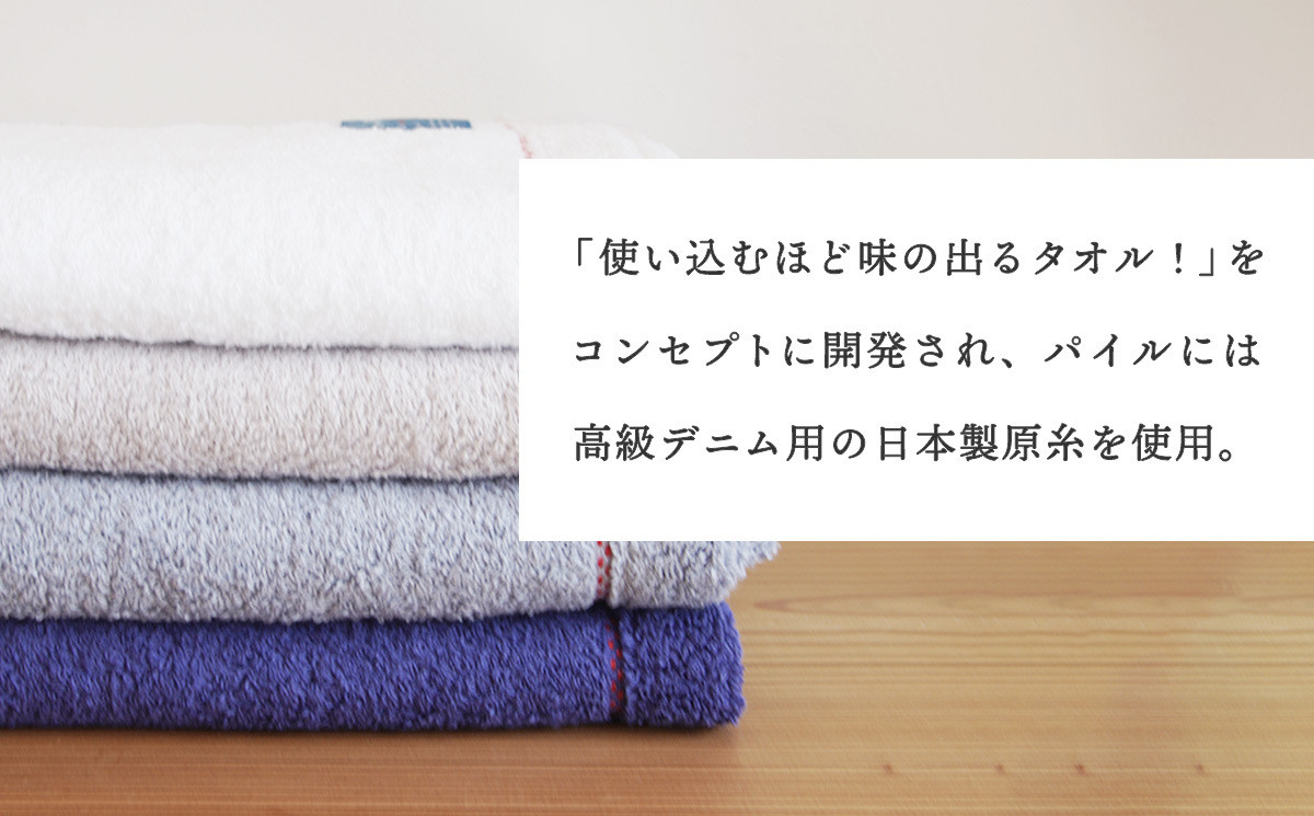 使い込むほど味の出るタオル!パイルには高級デニム用の日本製原糸を使用