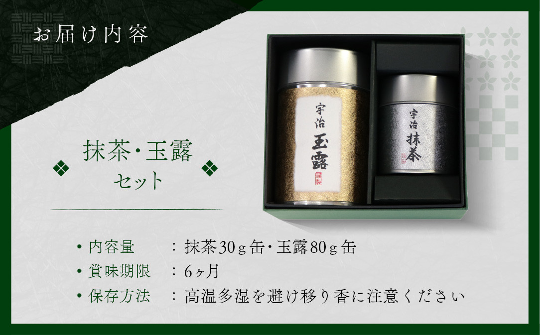 宇治茶の味と香りを楽しんでいただけます 京都宇治抹茶・玉露セット(2種・計110g)【uj-AT001】【宇治茶商俱楽部】
