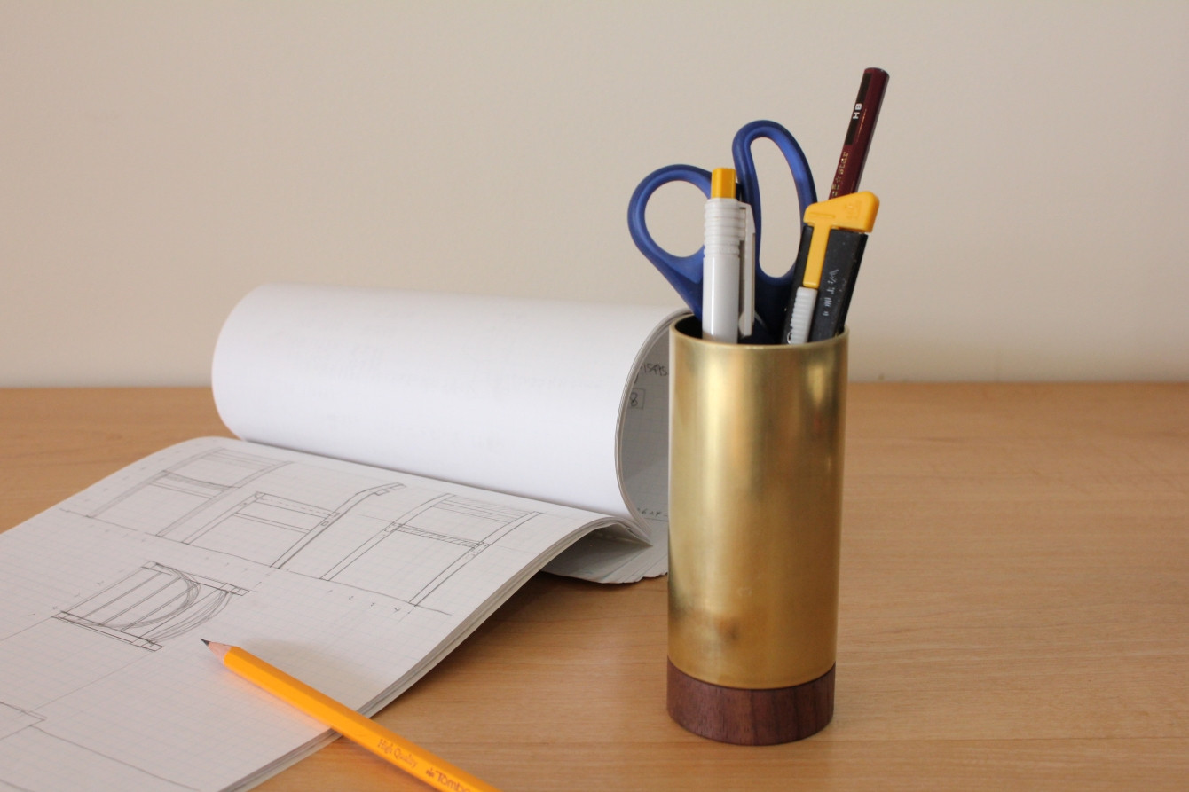 ペン立て(ブラックウォールナット)【uj-CY003-A】【平山日用品…32,000 円 真鍮と木を組み合わせたペン立てです。馴染んだ味のある雰囲気に育ちます。 - 常温便
