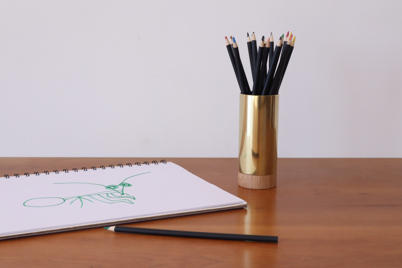 真鍮と木を組み合わせたペン立てです。