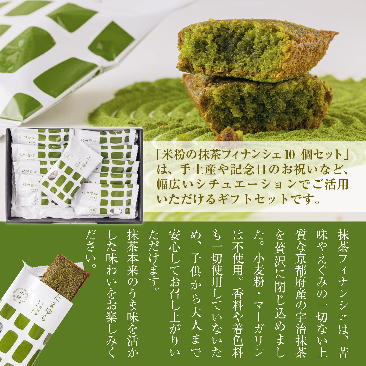 「米粉の抹茶フィナンシェ」は、手土産や記念日のお祝いなど、幅広いシチュエーションでご活用いただけるギフトセットです。