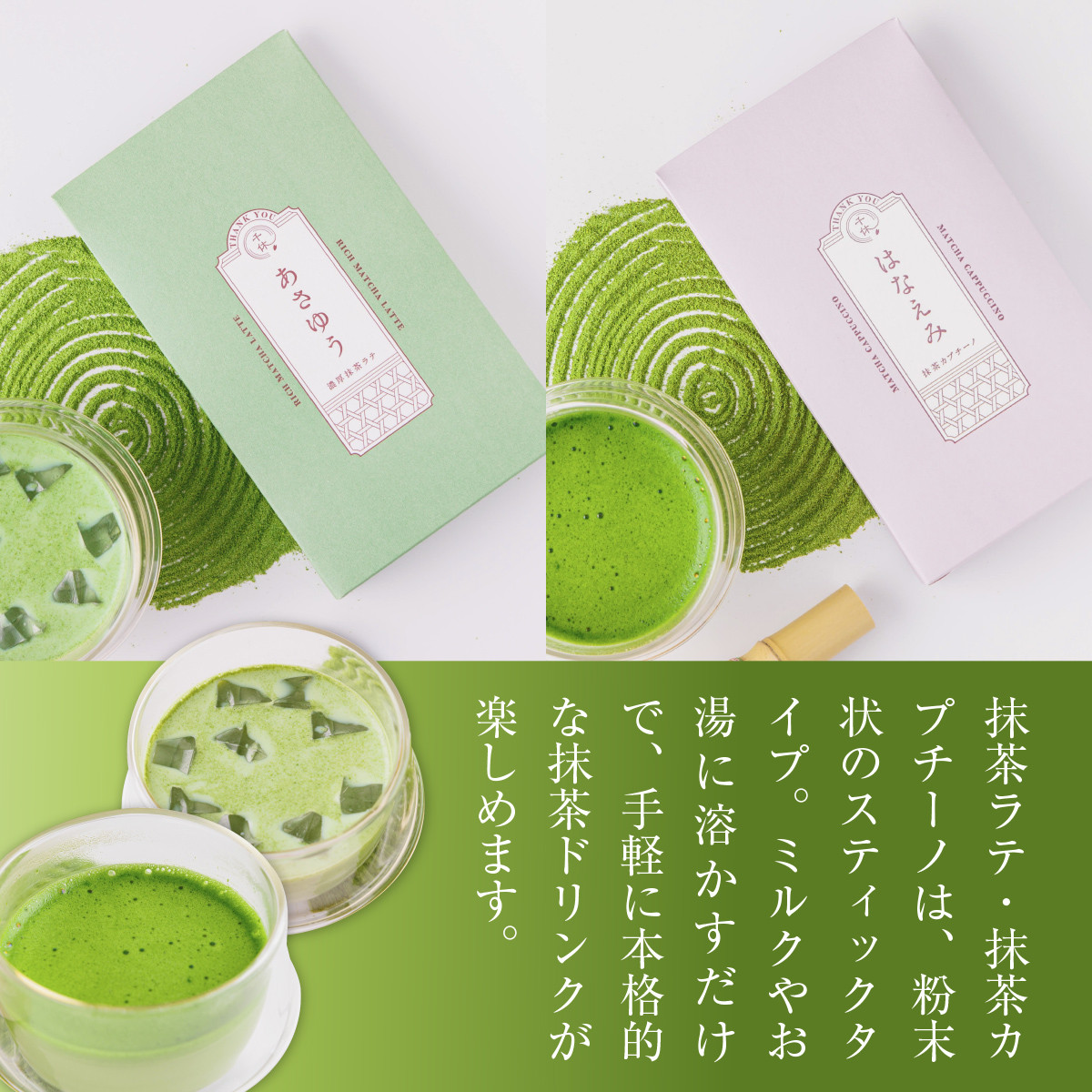 抹茶ラテ / 抹茶カプチーノは、粉末状のスティックタイプ。ミルクやお湯に溶かすだけで、手軽に本格的な抹茶ドリンクが楽しめます。