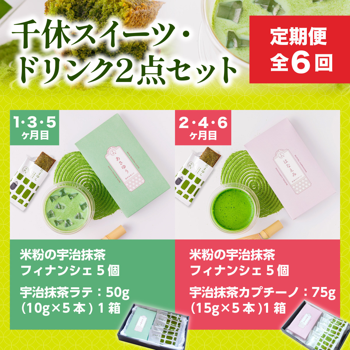 京都府産の上質な宇治抹茶を使用した、抹茶スイーツとドリンクが楽しめる定期便 <定期便・全6回>千休スイーツ・ドリンク2点セット【uj-CM021】【千休】