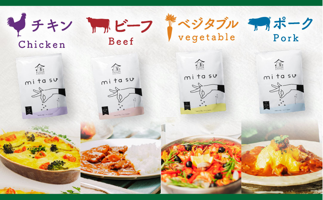 製法は化学調味料、保存料不使用にこだわりました! AA01 半調理レトルト食品【mitasu】450g(2人前)4袋