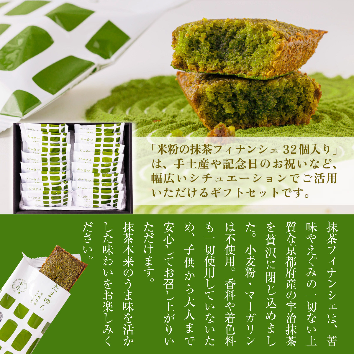 苦味やえぐみの一切ない上質な京都府産の宇治抹茶を贅沢に閉じ込めました 超濃厚!米粉の抹茶フィナンシェ(32個) 【uj-CM008】【千休】