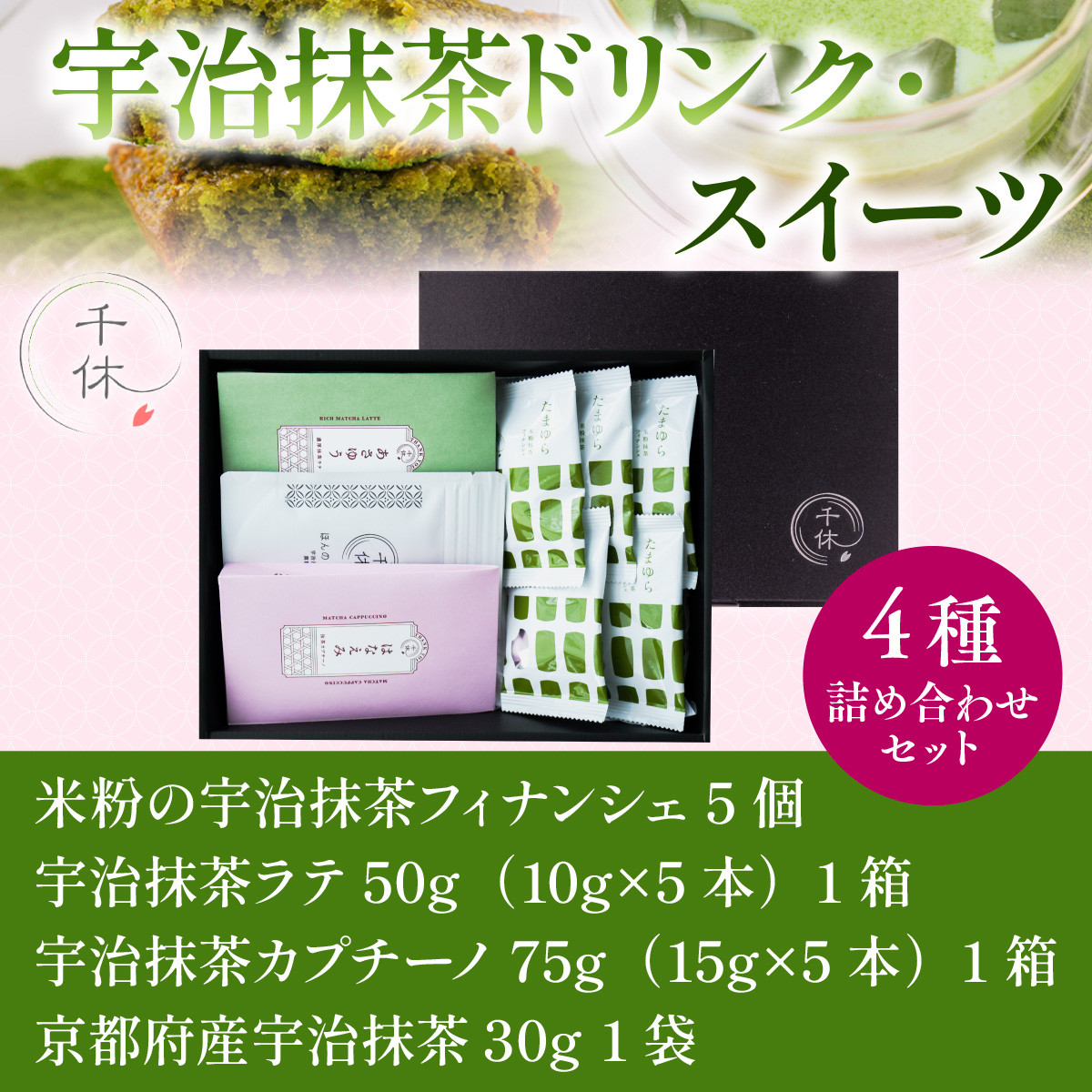 京都府産の宇治抹茶を使用した本物の味を贅沢に味わえるギフトセット 濃厚!宇治抹茶ドリンク・スイーツ4種詰め合わせセット【uj-CM006】【千休】