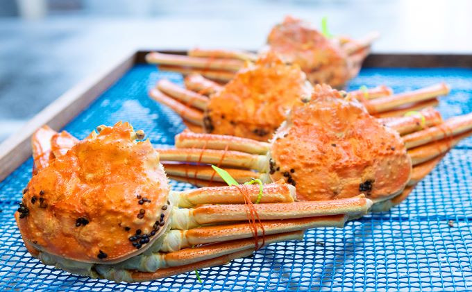 かに湯がき30年のキャリアを持つ職人自らが港に出向いて見極めた上質の松葉がにを、先代より引き継がれた匠の技で湯がく自慢の逸品です。