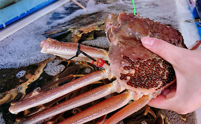 舞鶴産、柴山産、香住産、津居山産のタグ付き松葉蟹のいづれかをお届けします。