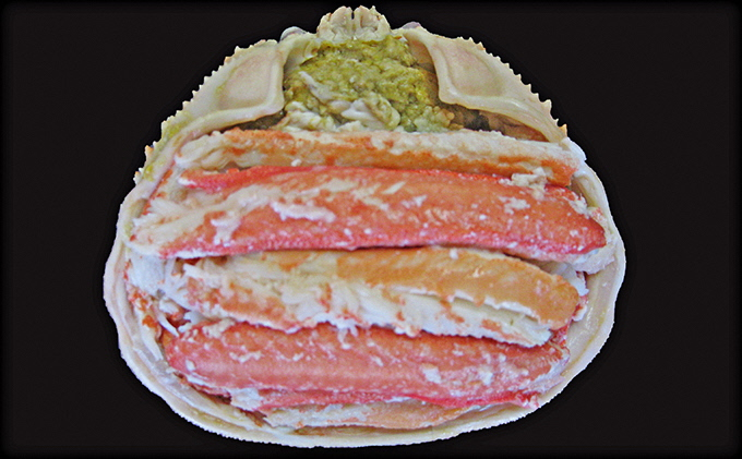 1000g級の茹でた松葉がにを使用し、脚身と腹身、蟹味噌を食べやすいように一つ一つ丁寧に殻から取り出し、甲羅に盛り込みました(甲羅共に420g以上)。