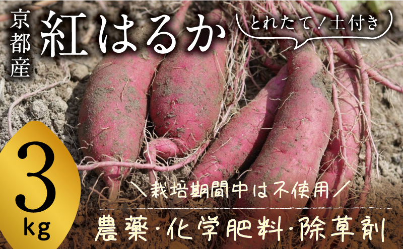 京都府産 サツマイモ (紅はるか) 3kg 栽培期間中農薬・化学肥料・除草剤不使用[№5716-0747]
