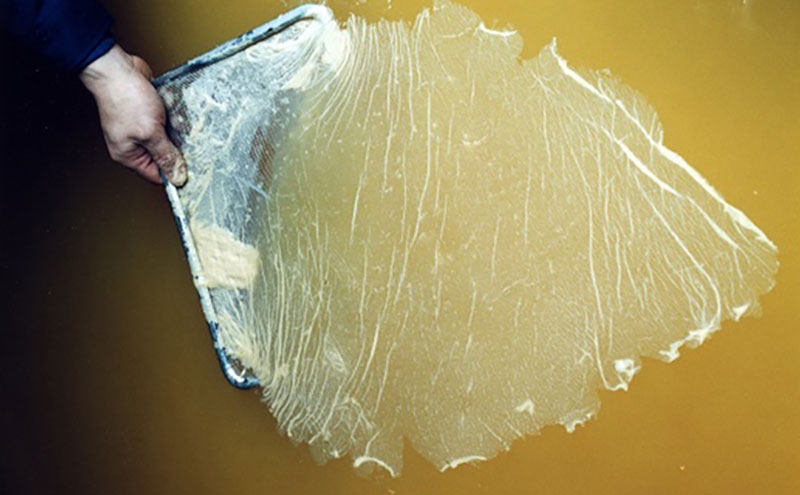 米から酢もともろみ(酒)を醸し、その酢もともろみ(酒)で酢を造る……。昔から行われてきた日本古来のお酢の造り方です。 ただし、いまだにこんなやり方を守っているお酢メーカーは本当に稀です。 驚いたことに、400社余りある日本の食酢メーカーのうち、自社で製造の設備を持つのは3分の1以下。 設備を持たないメーカーでは高い酸度のお酢を仕入れてきて、水でうすめて販売しているのが実状です。また、製造設備を持つメーカーの中でも酢もともろみ(酒)を造る酒蔵までも持っているところは、ほとんどありません。 米作りから手掛けるメーカーとなると、私どもだけだと思います。