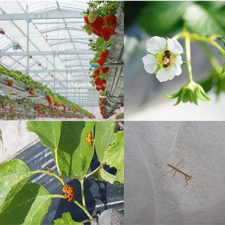 アブラムシに対しては、アブラバチやテントウムシ、ハスモンヨトウやヨトウムシに対してはカマキリ、ハダニに対してはそれを食するダニを導入しています。