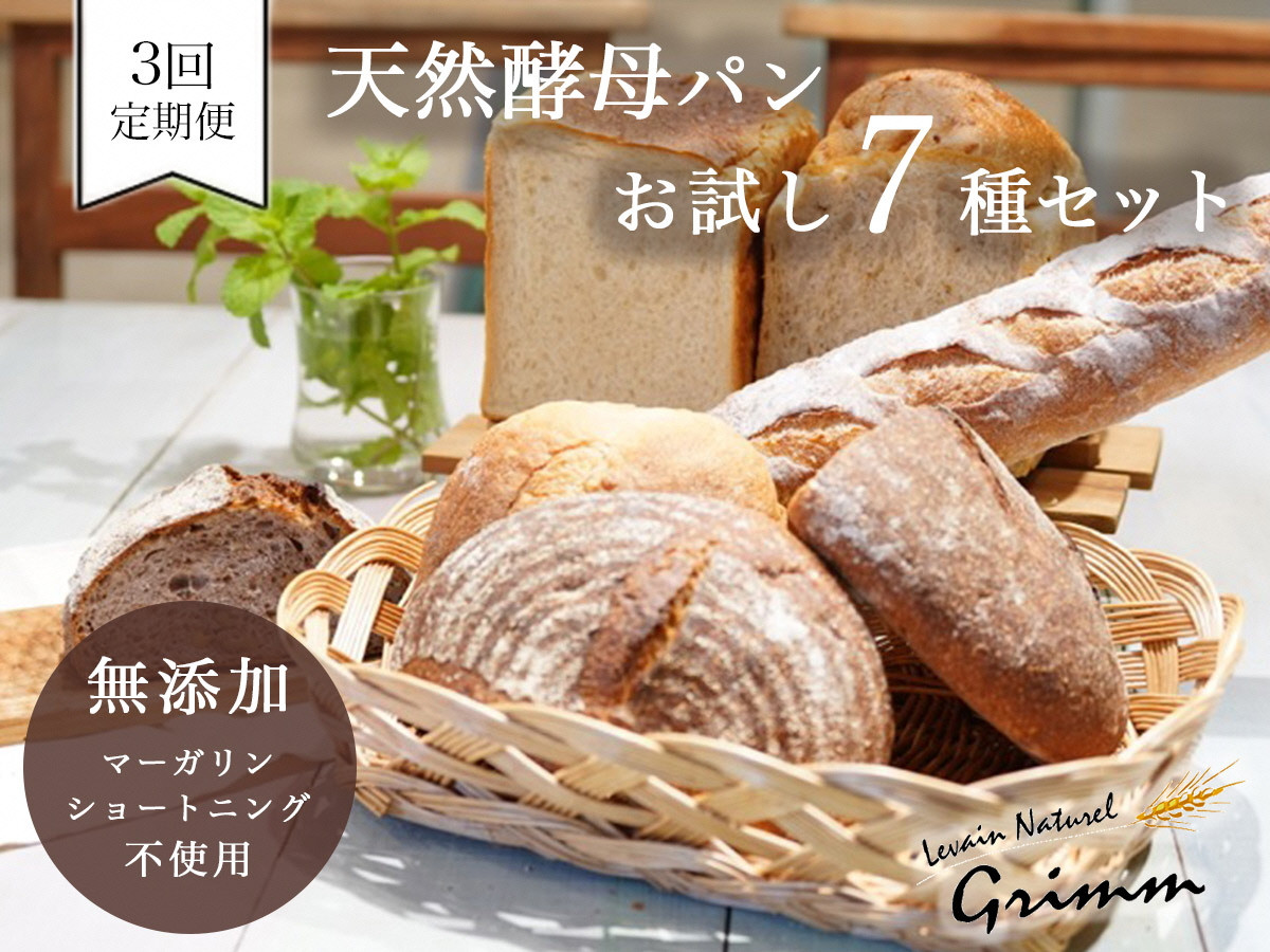 チョイスPayポイントと交換できる品 素材にこだわった京都・亀岡の人気ベーカリー 3回定期便 天然酵母 パン セット(食パン×2種・バケット×1種・カンパーニュ×4種 計7種) 《国産小麦 フランス産小麦 有機 無添加 詰め合わせ セット 朝食 京都》 ※北海道・沖縄・離島への配送不可