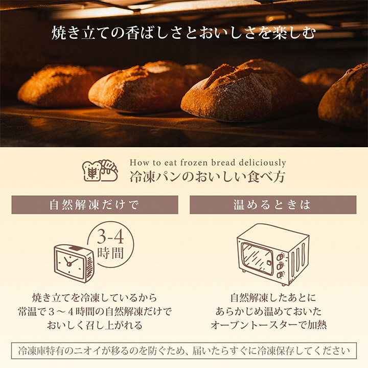 | 容量 | 国内麦玄米食パン1斤 プルマン1斤 バケット1本 パンドカンパーニュ(ハーフサイズ) 胡桃のカンパーニュ(ハーフサイズ) ルントシュトック(ハーフサイズ) 京小麦石臼挽き全粒粉パン(ハーフサイズ) ※計7種類を毎月1回、計3回お届け |