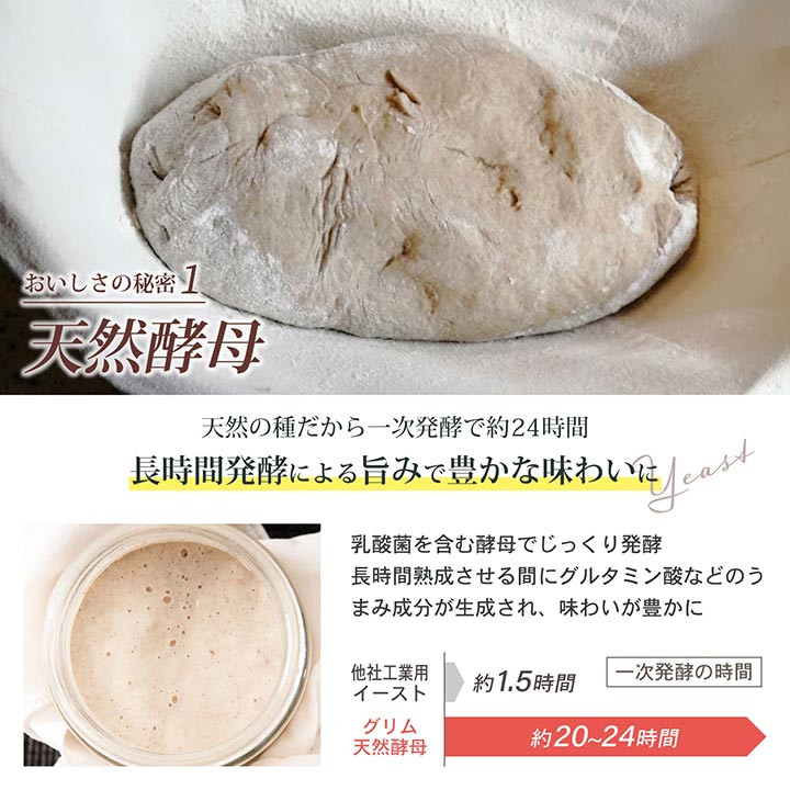 天然酵母パン「グリム」は、1986年の創業以来、無添加、天然酵母、国産素材にこだわり続け、開業から35年以上が経ちました。天然酵母の力によって生地を長時間熟成させ、小麦本来の旨味を引き出す昔ながらの製法を守り続けています。一つ一つ丁寧にパンを作り、地域社会とのつながりを大切にしながら成長してきました。