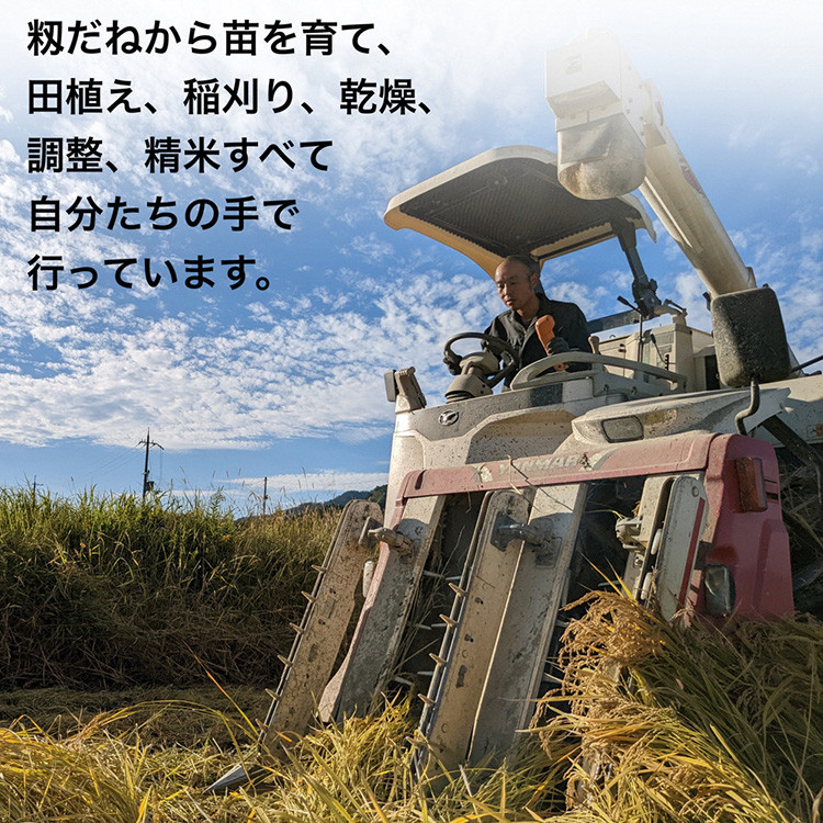 おいしい空気と水、肥沃な土壌に恵まれた亀岡。籾だねから苗を育て、田植えから稲刈りはもちろん、乾燥・調製・精米まですべて自分たちの手で行っています。