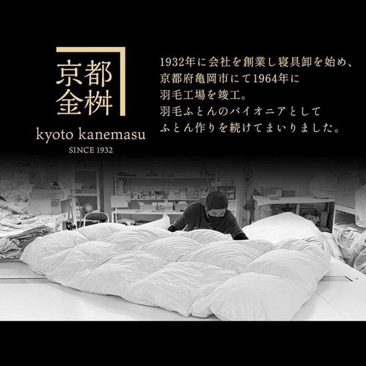 株式会社京都金桝ではきめ細かいニーズに対応し、熟練の職人が1枚ずつ丁寧に手作りした良品良質の羽毛ふとんをお届けしています。