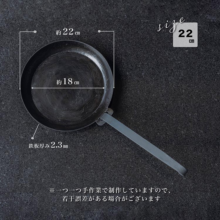 約22cmのサイズで、2〜3人前のお料理にピッタリなフライパンです!