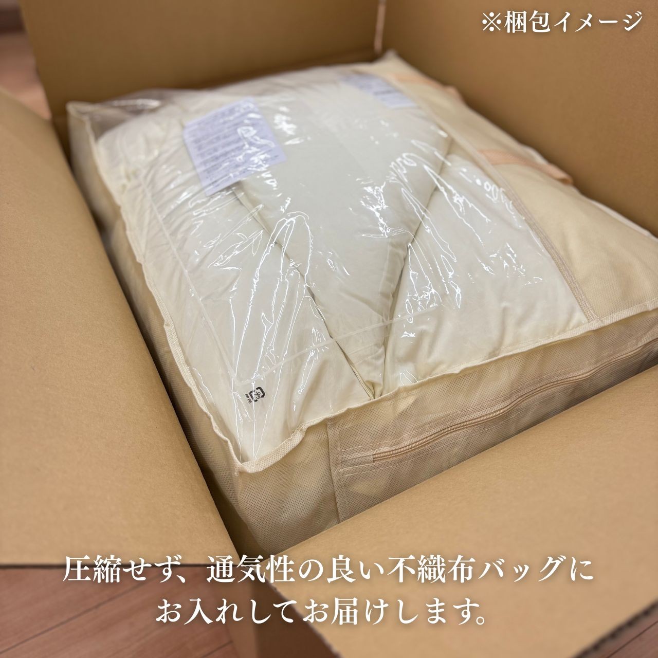 通気性の良い不織布バッグに入れてお届けいたします。オフシーズンの保管にもお使いください。