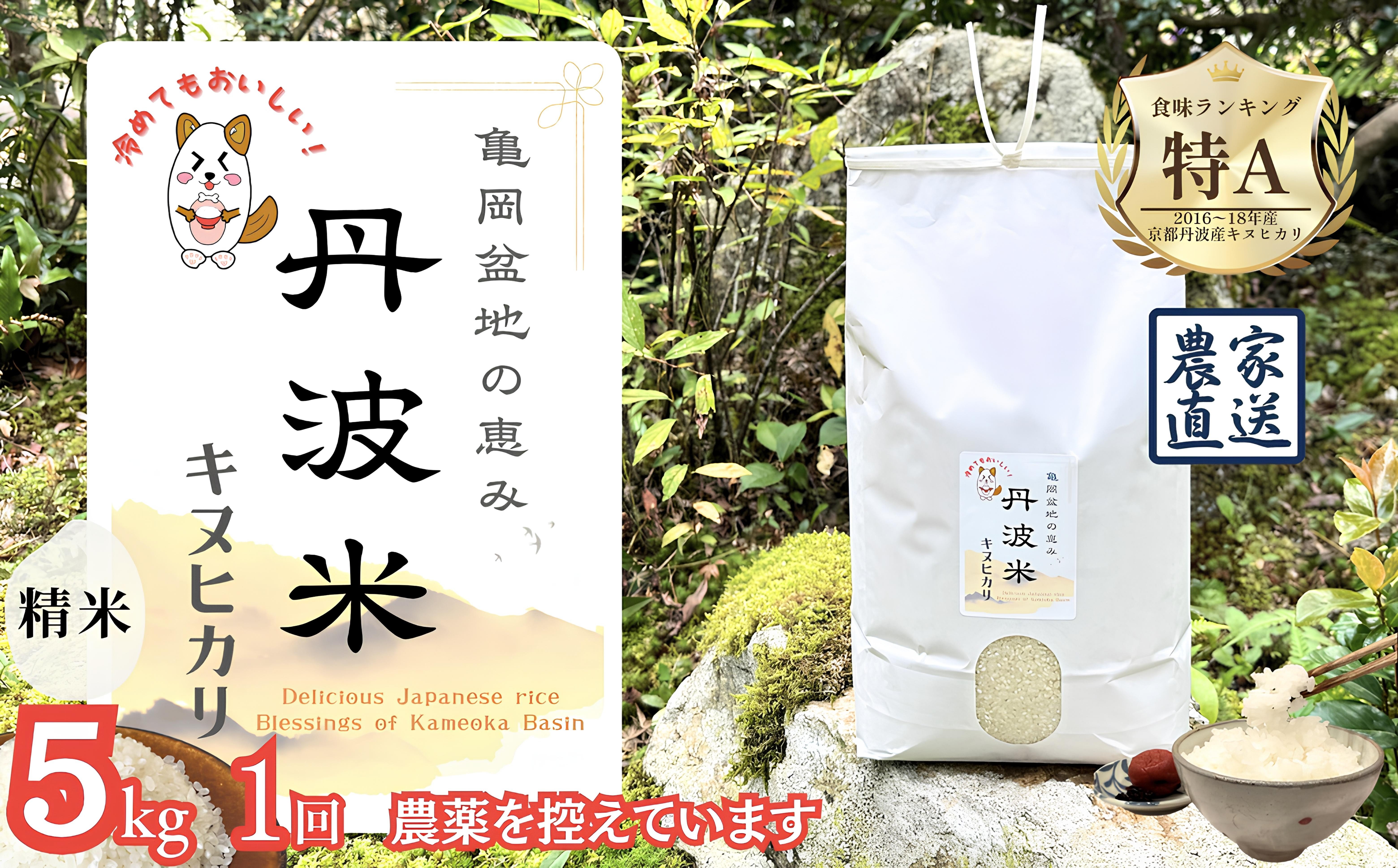 チョイスPayポイントと交換できる品 日本穀物検定協会の食味ランキングで京都丹波産キヌヒカリは3年連続「特A」を獲得 【令和7年産】新米 京都丹波産 キヌヒカリ 5kg ≪亀岡盆地の恵み 農薬を控えています 精米したてをお届け 自家栽培米 生産農家 直送 白米 米 精米≫ ※北海道・沖縄・離島への配送不可