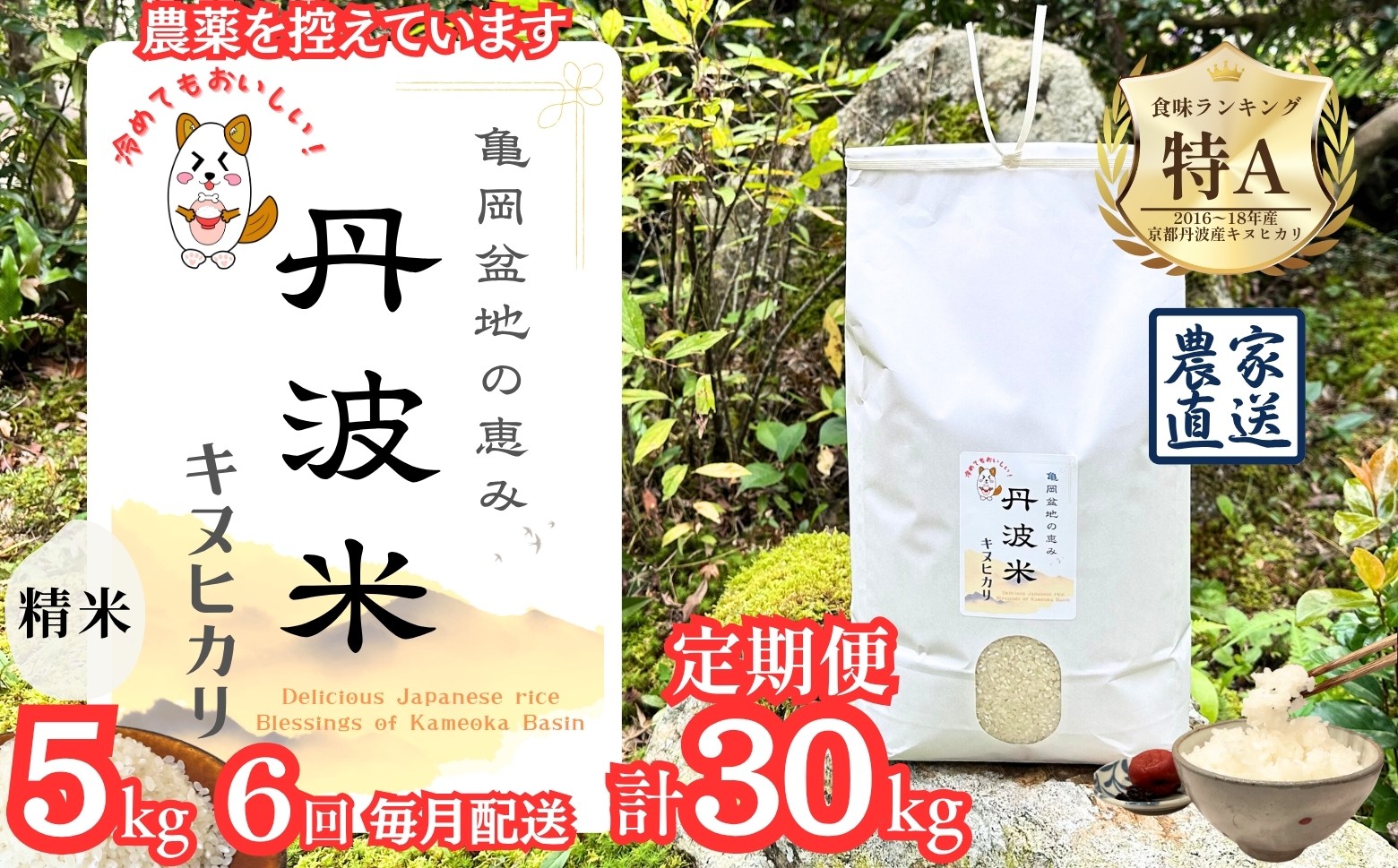 チョイスPayポイントと交換できる品 日本穀物検定協会の食味ランキングで京都丹波産キヌヒカリは3年連続「特A」を獲得 【定期便】【令和7年産】新米 定期便 京都丹波産 キヌヒカリ 5kg×6回 計30kg ≪亀岡盆地の恵み 農薬を控えています 精米したてをお届け 自家栽培米 生産農家 直送 白米 米 精米≫ ※北海道・沖縄・離島への配送不可