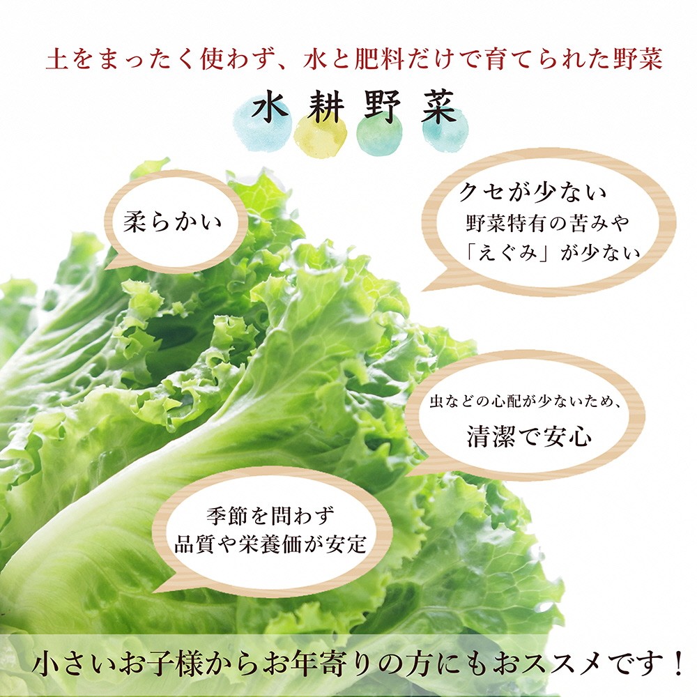 水耕野菜は柔らかくクセも少なく、小さいお子様からお年寄りの方にもおススメです。