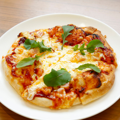 ほぼ完成に近い状態で半焼きにしています。家庭用トースターもしくはオーブンで焼きやすように大きさや焼き方を工夫しています。再加熱して出来立てのピザをお召し上がりください。