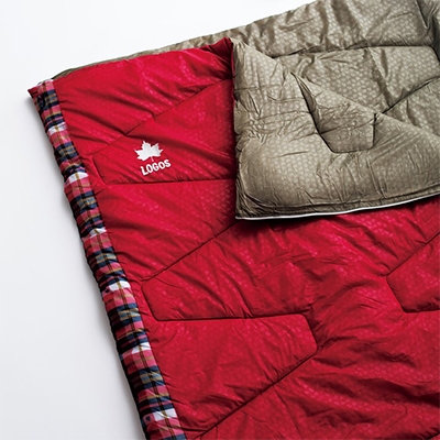 適正温度-2度まで対応する防寒性に優れたシュラフは、サイドにチェク柄をあしらったあたたかみのあるデザイン。