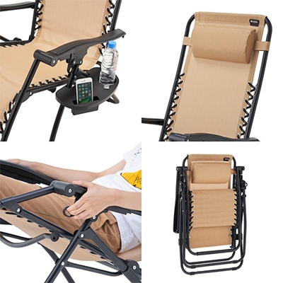 背もたれをお好みの角度に設定できる、無段階調節のリクライニングチェア。