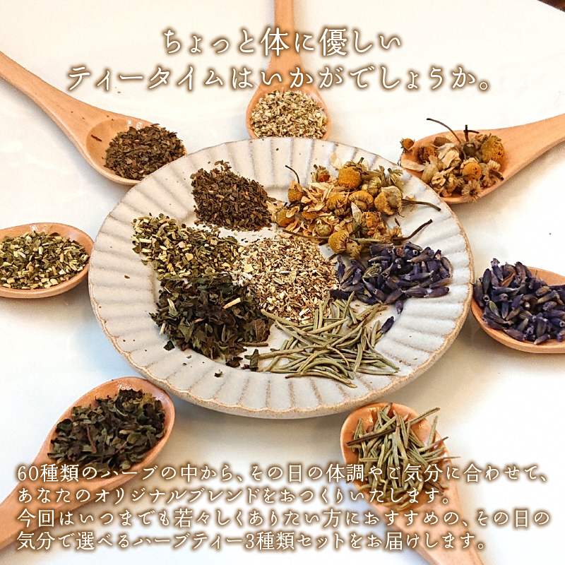ハーブティー 3種類 5パックずつ いつまでも健康でいたい方に おすすめ オリジナル ブレンド ハーブ 健康 癒やし デトックス 茶葉 茶 お茶 家族 友達 京都 向日市 ハーブティカフェ心葉