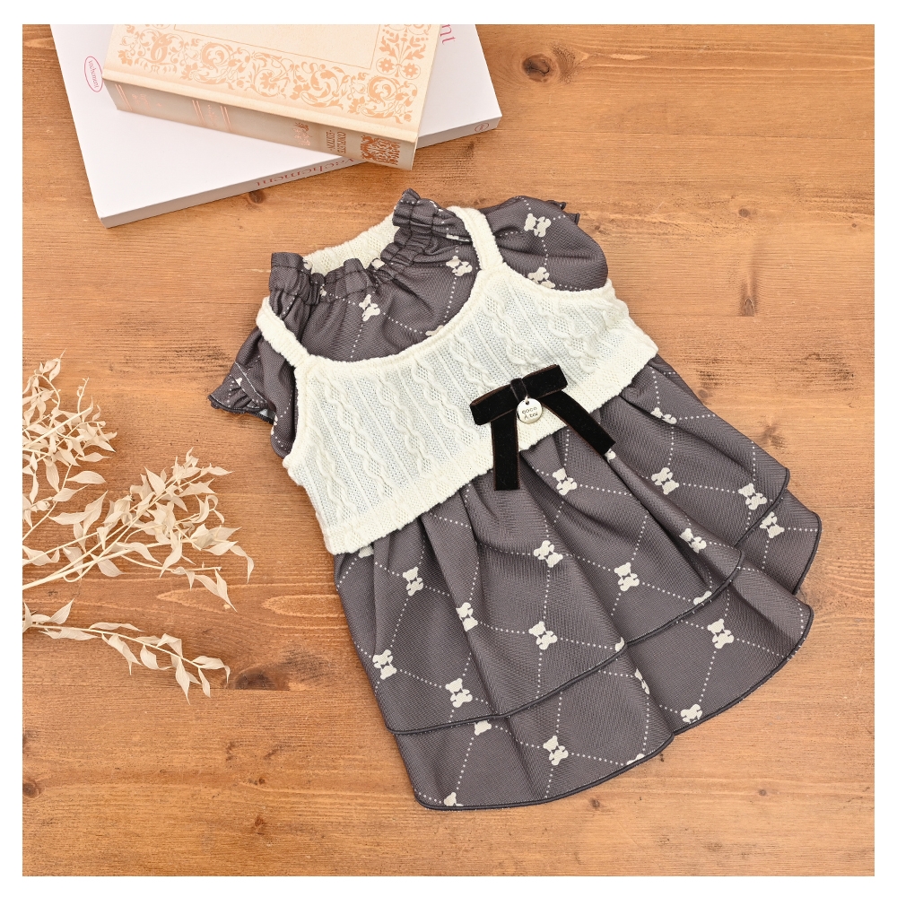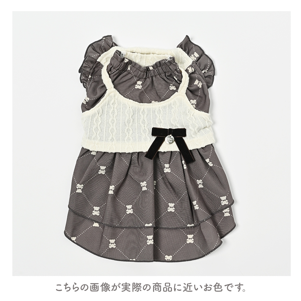 ニットキャミレイヤードワンピース 犬服 小型犬 ドッグウェア くま柄 モノグラム【ココアトワ(cocoAtoi)】 [№5223-0262]