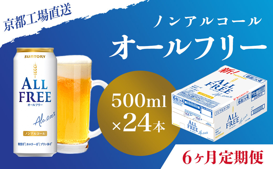 「ぐっとくるのどごし」と「キレの良い後味」 <6ヶ月定期便>【京都直送】<天然水のビール工場>京都産 オールフリー500ml×24本 計6回お届け ふるさと納税 定期便 6か月ノンアルコールビール サントリー ノンアルコール 工場 直送 天然水 健康意識 糖質 ゼロ 制限 京都府 長岡京市 NGAG14