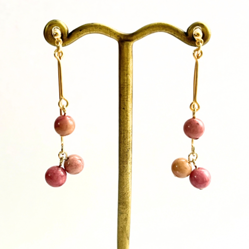 少しずつ色味の違う3粒のロードナイトをあしらいました まるでピアスのようなイヤリング*ロードナイト / アクセサリー ジュエリー イヤリング 天然石 京都府 長岡京市 NGBE012