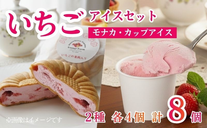 いちごのアイスセット 2種 計8個 もなか カップアイス いちご 苺 イチゴ いちごアイスクリーム アイス アイスクリーム カップアイス モナカアイス もなか 最中 モナカ 冷たい ひんやり セット 人気 おすすめ ふるさと納税 京都 八幡 八幡市 上杉農園