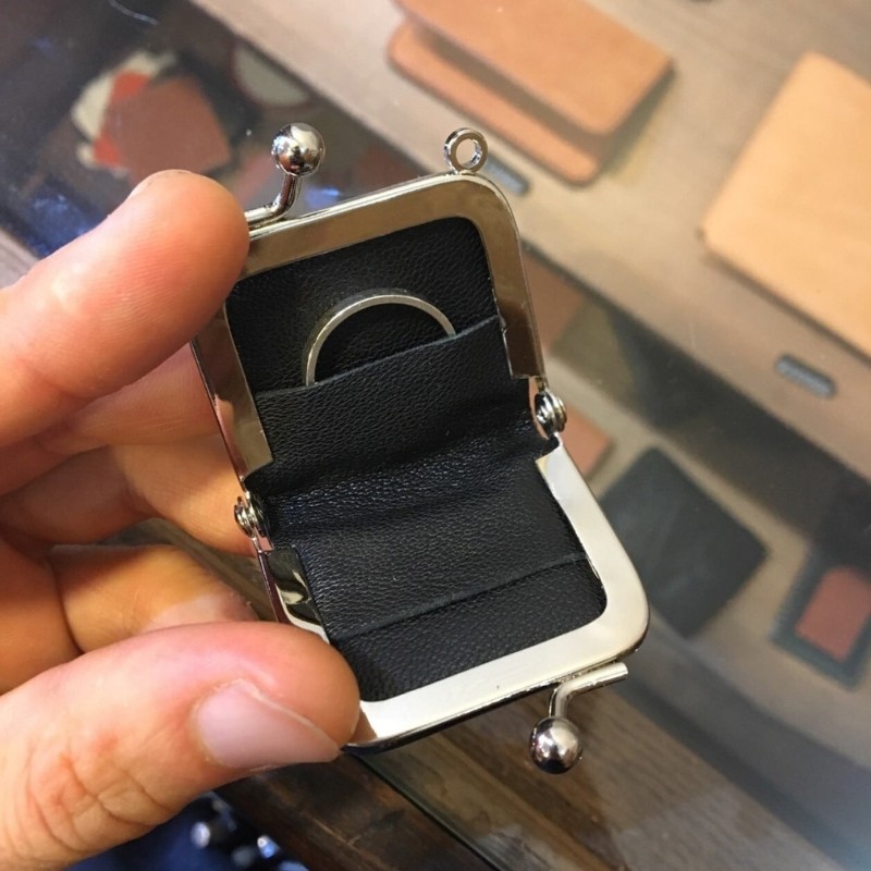 がま口タイプの指輪ケースは、指輪の収納に最適なミニマムサイズの口金を使用。