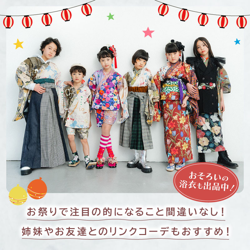 お揃いの甚平も出品しており、姉妹やお友達とのリンクコーデもおすすめです。