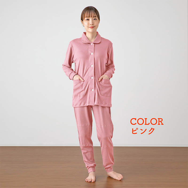 ヒートコットン レディースパジャマ Lサイズ(ピンク、ラベンダーブルー) ルームウエア パジャマ 婦人用 婦人 選べる カラー 伸縮性 ニット素材